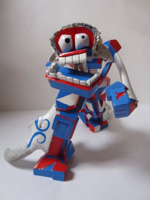 Looking to create something with interesting shapes, but clearly a figure or cartoon character. This sculpture of mine comes close to what I want: